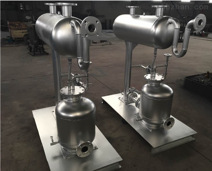 是一种利用物理原理的蒸汽凝结水回收装置用户系统运行正常时,冷凝水从用热设备中排出,经专用疏水装置共网装置等专用疏水装置顺利引入闪蒸罐根据需要可进行二次汽分离利用分离后的冷凝水被热泵引入回水罐,经消汽蚀处。