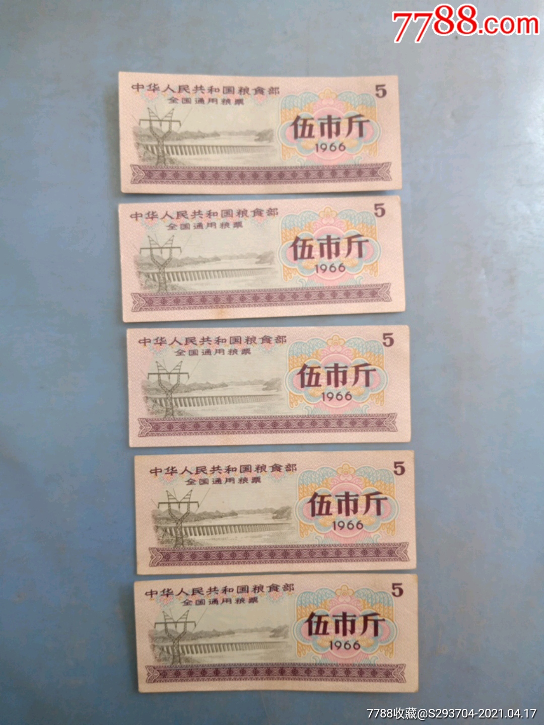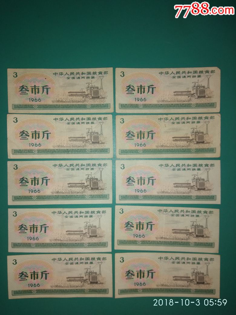 全国通用粮票1966年7全新目前市场价20来元一套叁市斤单枚全新有水印2元1枚,无水印1元1枚,如果很旧的话不值一文。