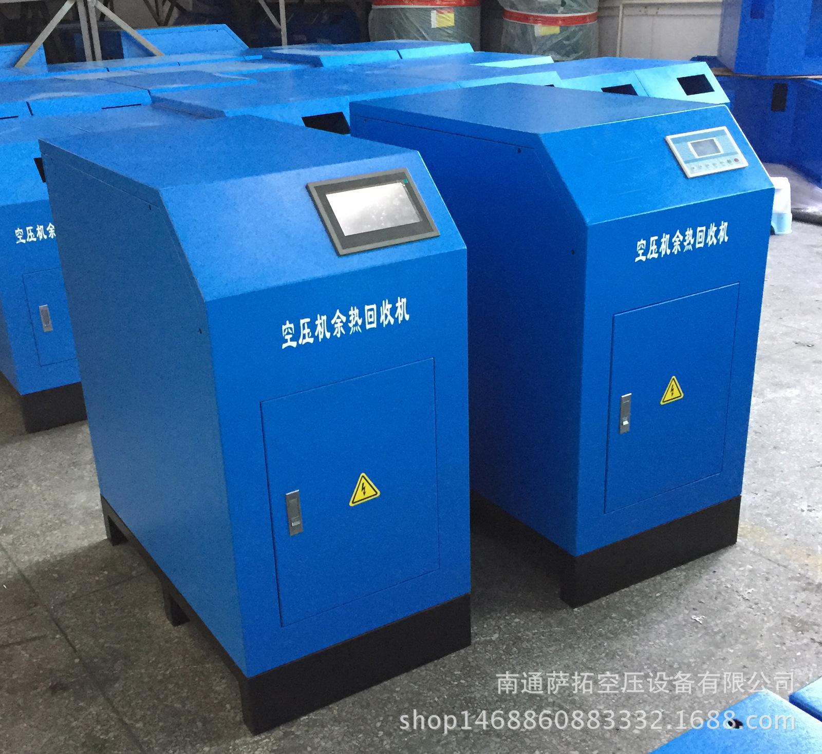 回收空压机冷却润滑油及压缩空气的余热,回收的余热可以用来烧热水,用于工厂员工宿舍,还可以用于工业工艺方面,如加热碱洗槽,酸洗池,或者是冬季办公室的取暖等空压机在生产工作时产生大量的热能,以往都被散热器和散热风扇。