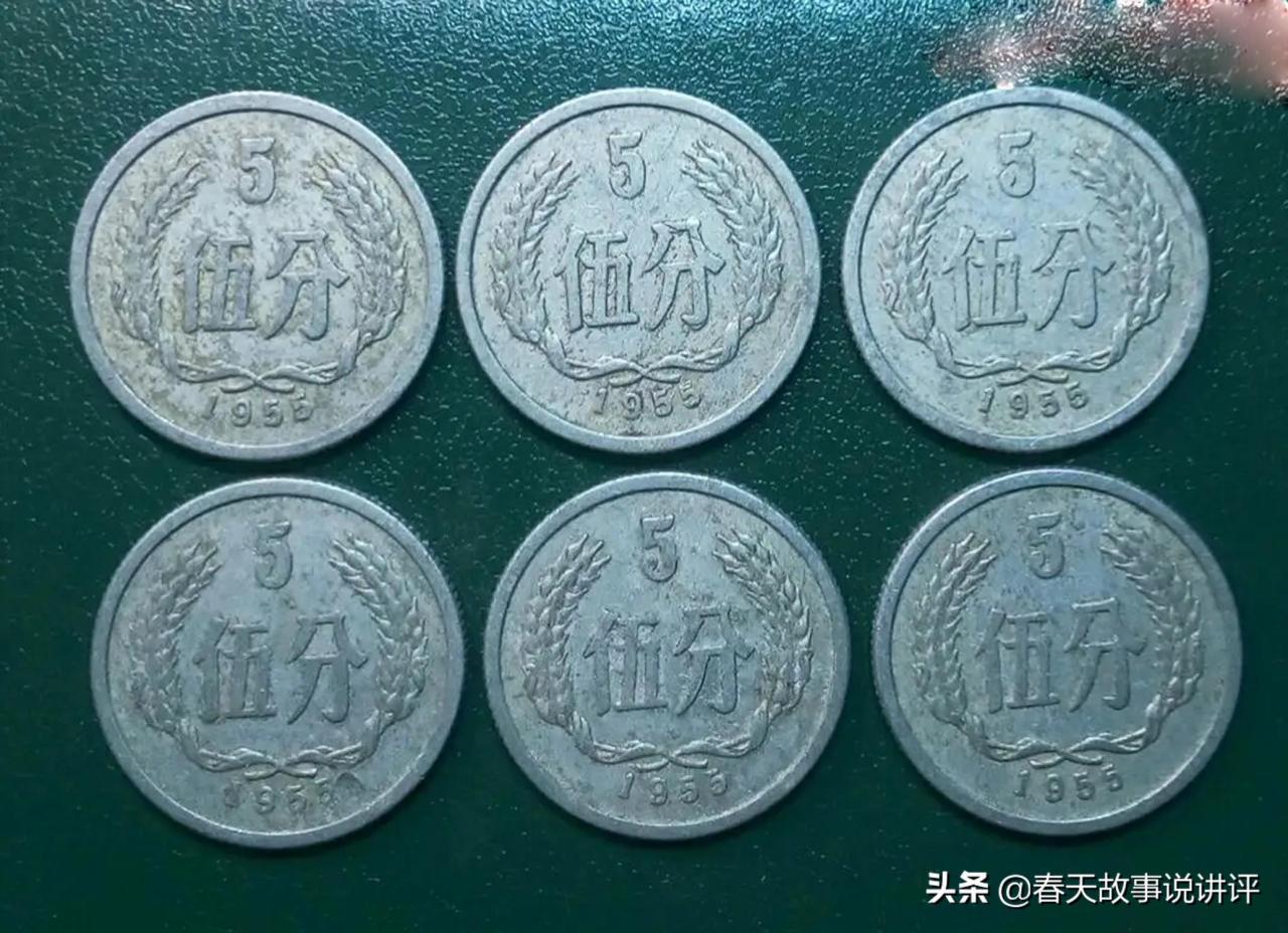 新中国成立以来,我国共发行了四套硬币,其中第一套硬币共有三种面值,分别为壹分、贰分、伍分,这也是目前国内唯一一套全为分币的硬币币种。