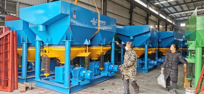 2、采用先进的偏心轴振动筛进行筛分。粗料筛出后直接排走。 细料根据矿体情况选配:离心选矿机、鼓动溜槽、蠕动溜槽等选金设备。