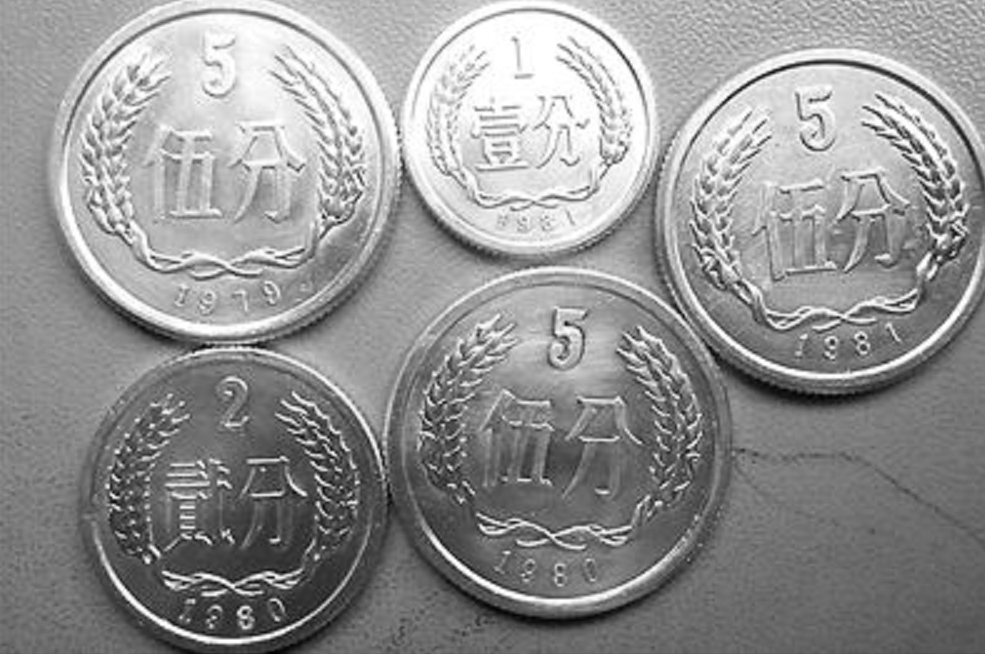 新中国成立以来,我国共发行了四套硬币,其中第一套硬币共有三种面值,分别为壹分、贰分、伍分,这也是目前国内唯一一套全为分币的硬币币种。