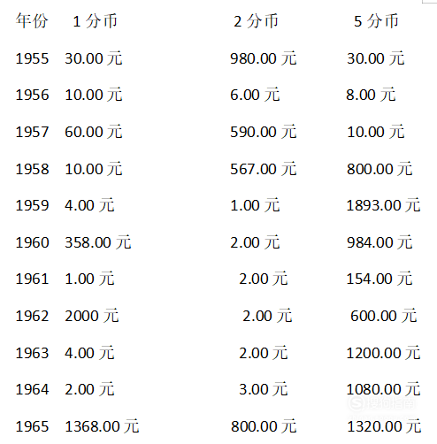硬币收藏价格表,其中包括我国最早发行的硬分币:1955年1分硬币和1955年5分硬币的价格,还有硬分币收藏界的“五大天王”:1979年5分硬币、1980年2分硬币、1980年5分硬币、1981年1分硬币和1981年5分硬币的价格,包括硬分币四小龙中的1992年1分硬币和1992年2分硬币的价格。供广大藏友参考!