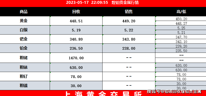 以上就是黄金各个纯度的回收价格,分子珠宝网会每日更新贵金属回收报价,如下图: