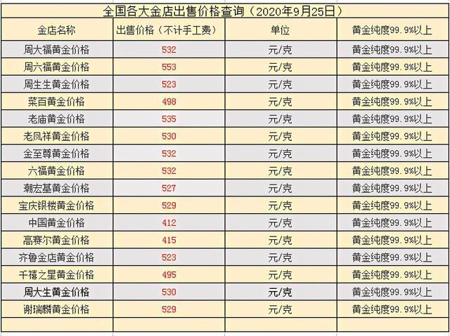金条零售价