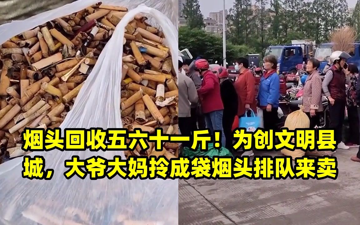 据说这是当地为了创建文明县城举办的活动,一斤烟头回收的价格在五六十左右这样的活动,不仅可以促进环保,同时还能帮助大爷大妈们创收,是个不错的活动其实类似的活动,很多城市都有举办过只不过这类活动,只能维持一段。