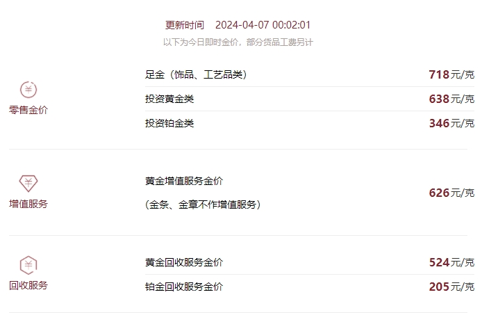 黄金价格今天多少一克_今日金价多少钱一克(07月20日):