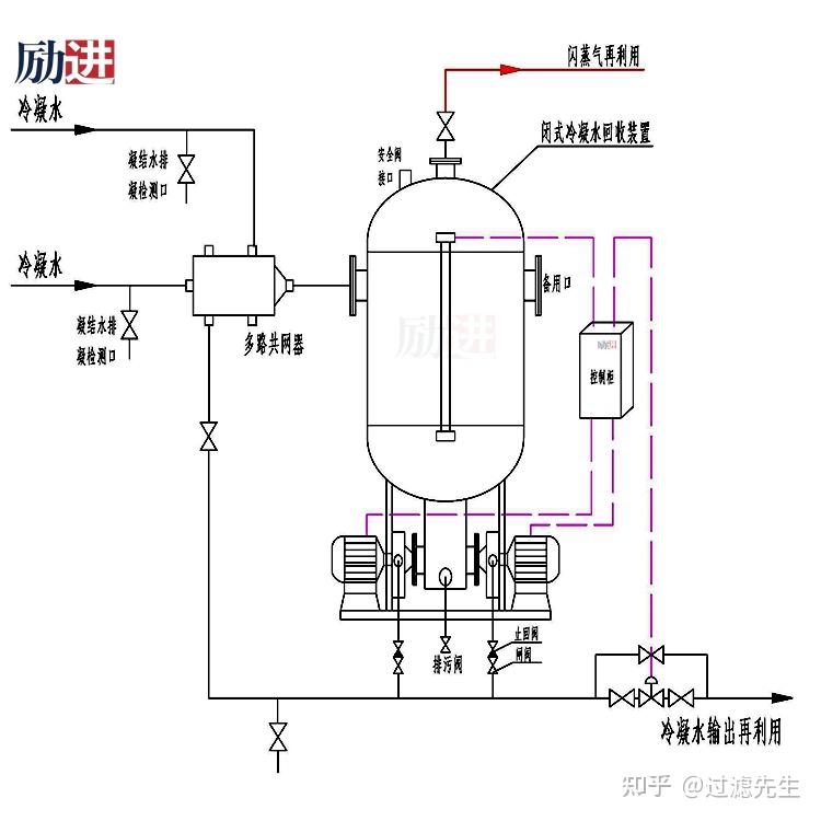 密闭式蒸汽回收机是说的蒸汽与冷凝水混合物通过疏水器或管道排出,直接由密闭式蒸汽回收机回收,并加压打回锅炉。这个回收过程是在完全密闭的环境中进行的,从而更加有效的保存蒸汽与冷凝水混合物中包含的热量及水资源,基本达到零损耗。通过密闭式蒸汽回收机达到锅炉用汽系统最佳节能效果。