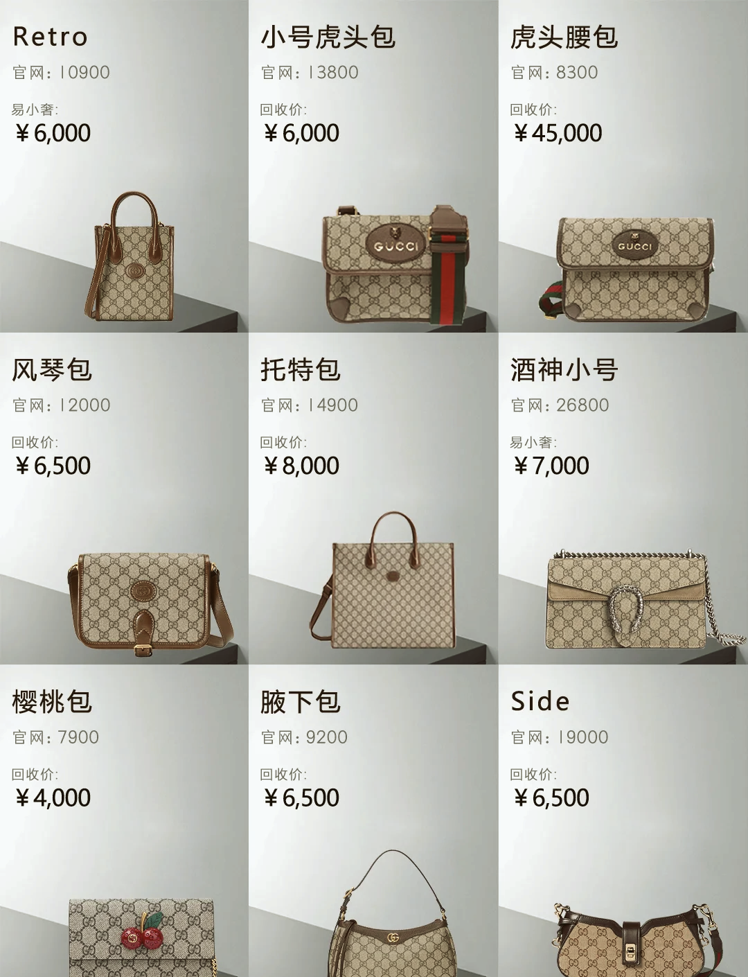 迷你款:22 厘米(宽)X 13 厘米(高)x 6 厘米(深)真丝衬里