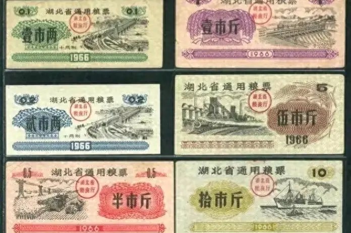 当时拥有粮票,就有吃的。图为使用时间最长的全国粮票,从1966年发行,到1993年退出流通领域,一直都能发现它的身影。特别是面值5市斤的全国票,很多人家里都有,也常有人问我这张票值多少钱,每当听到我说这票值几毛钱的时候,听者都很失望,更有极端的,说如果这票只值几毛钱,她宁可把票烧了。 更有一人,打电话咨询上海一家拍卖公司问此票的价格,拍卖公司答复此票价值十多万,还建议对方把这票送去他们公司拍卖。要是你,你会去吗?