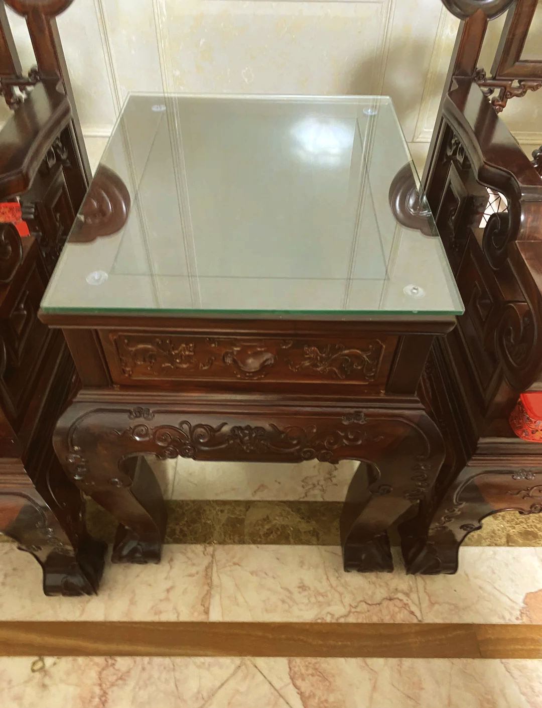 餐厅果然古老的很,大大的水晶吊灯,深棕色实木餐桌椅,精致的摆桌,西装革履的服务生,都彰显着餐厅的传统历史。同时此处是文物保护建筑,曾氏旧宅。