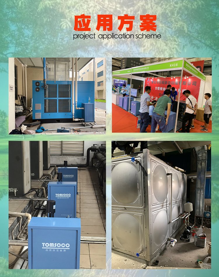 3、空压机余热回收是一种环保节能的设备,其原理是利用空压机运行过程中产生的废热作为热源,将其有效转换并传递到需要热量的设备上,整个过程无需额外的电能消耗这种设备通过巧妙地利用压缩空气的热能,实现了能源的高效再利用然而,由于当前缺乏统一的行业标准,空压机余热回收设备的名称在市场上五花八门。