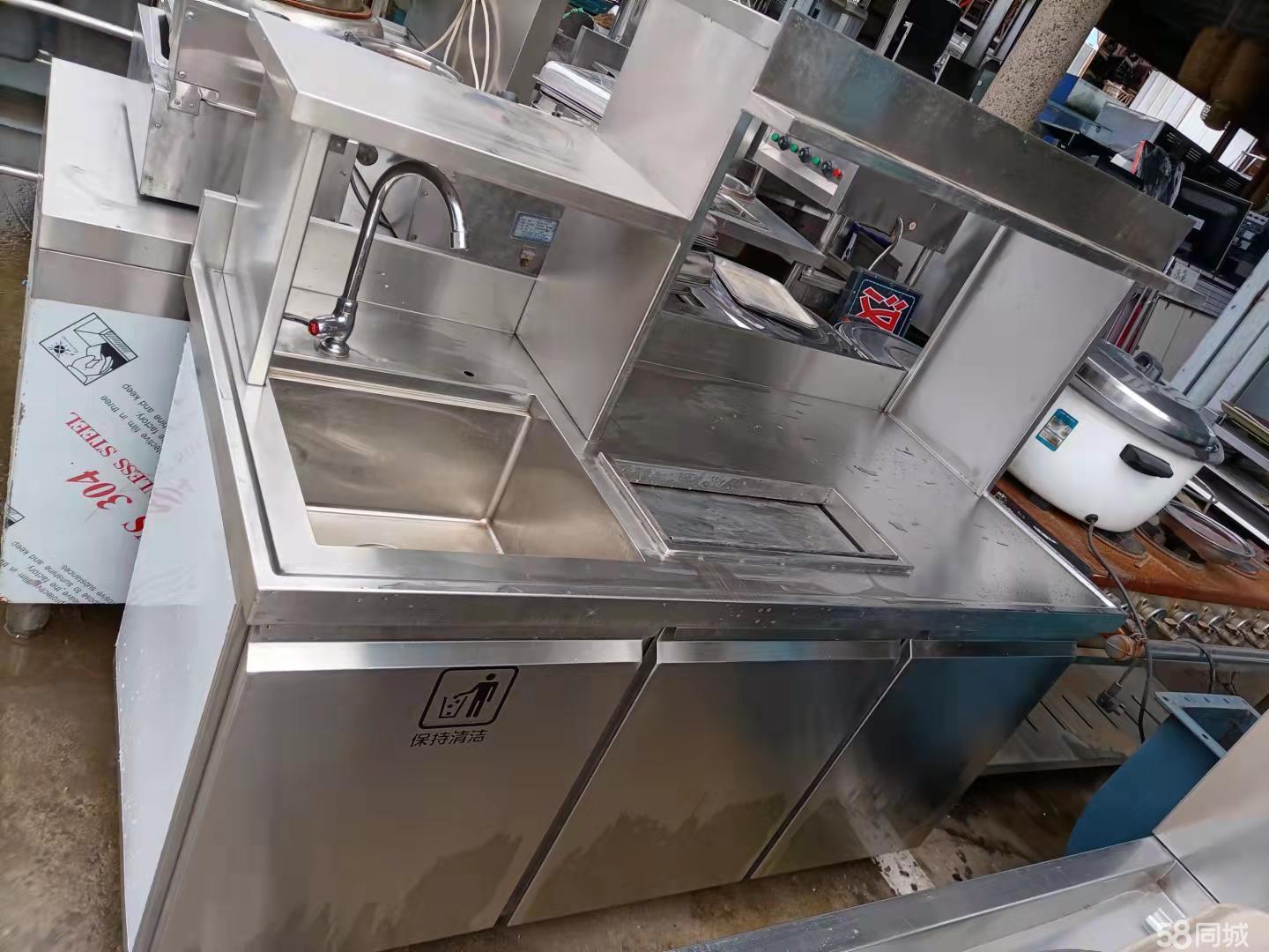 厨房设备: 不锈钢灶台,不锈钢案板,电烤箱,蒸饭车,洗碗机,和面积,水池等。。