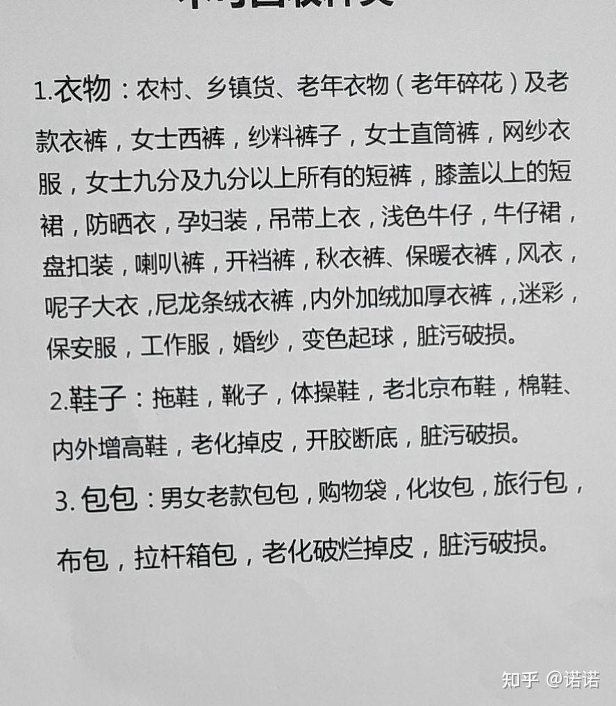 洋垃圾服装因为被长期穿过,洗过很多次,所以商标会卷曲、松斜,发黄发旧,规格、号码模糊不清。很多网上卖的外贸衣服的商标会被剪掉后出售,就是我们常常听到的剪标。