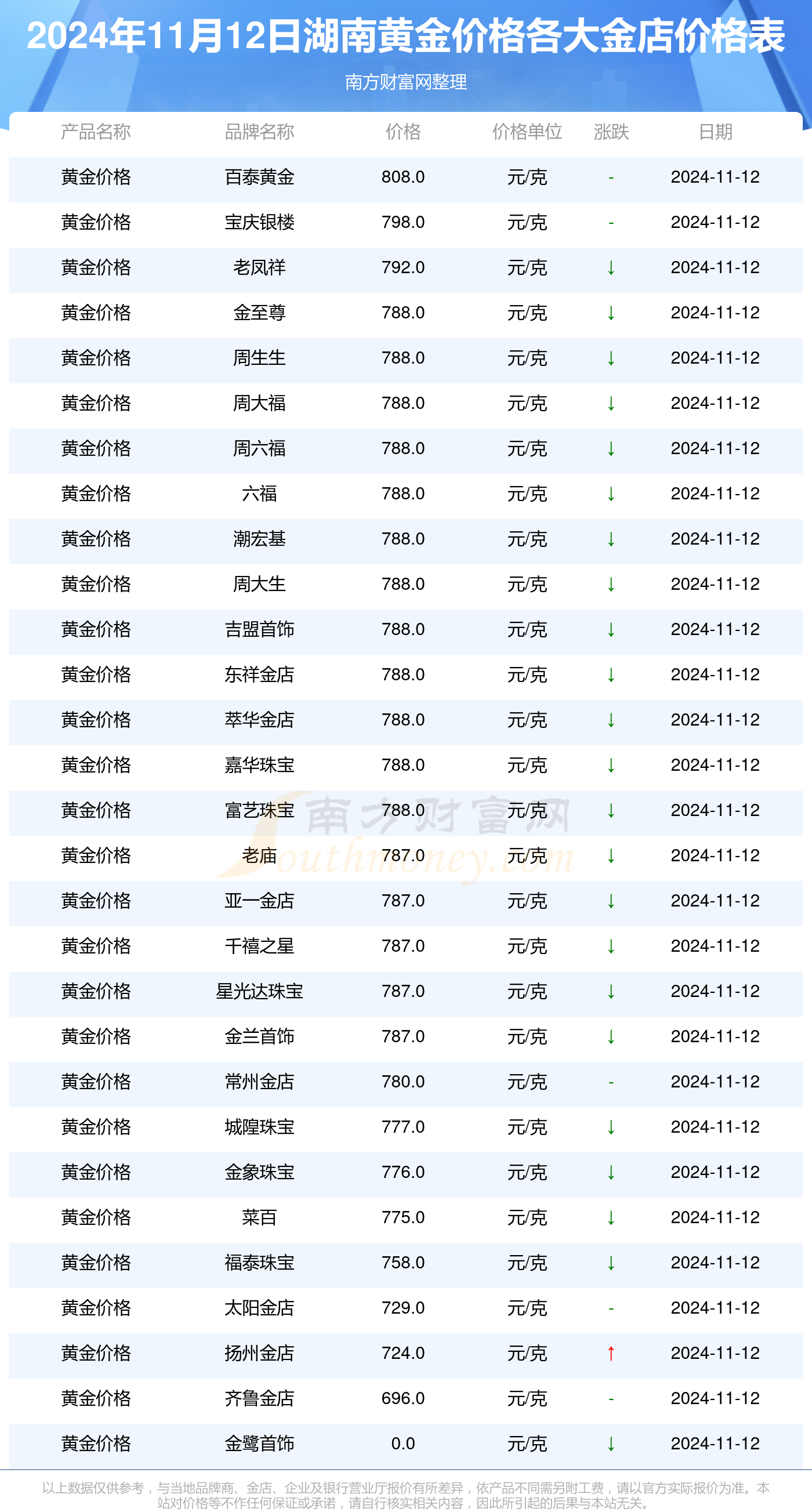 由于国内金价随国际金价波动,今日国内黄金首饰价格暂无变化。通过黄金价格走势查询(id:hjjg55)到,国内各大品牌金饰价格情况如下: