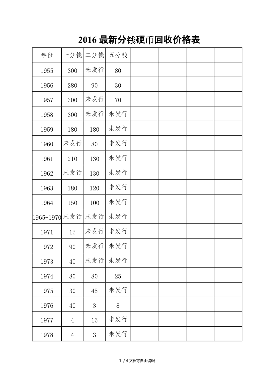 【梅花5角硬币价格表】1991-2001年梅花5角硬币价格一览表