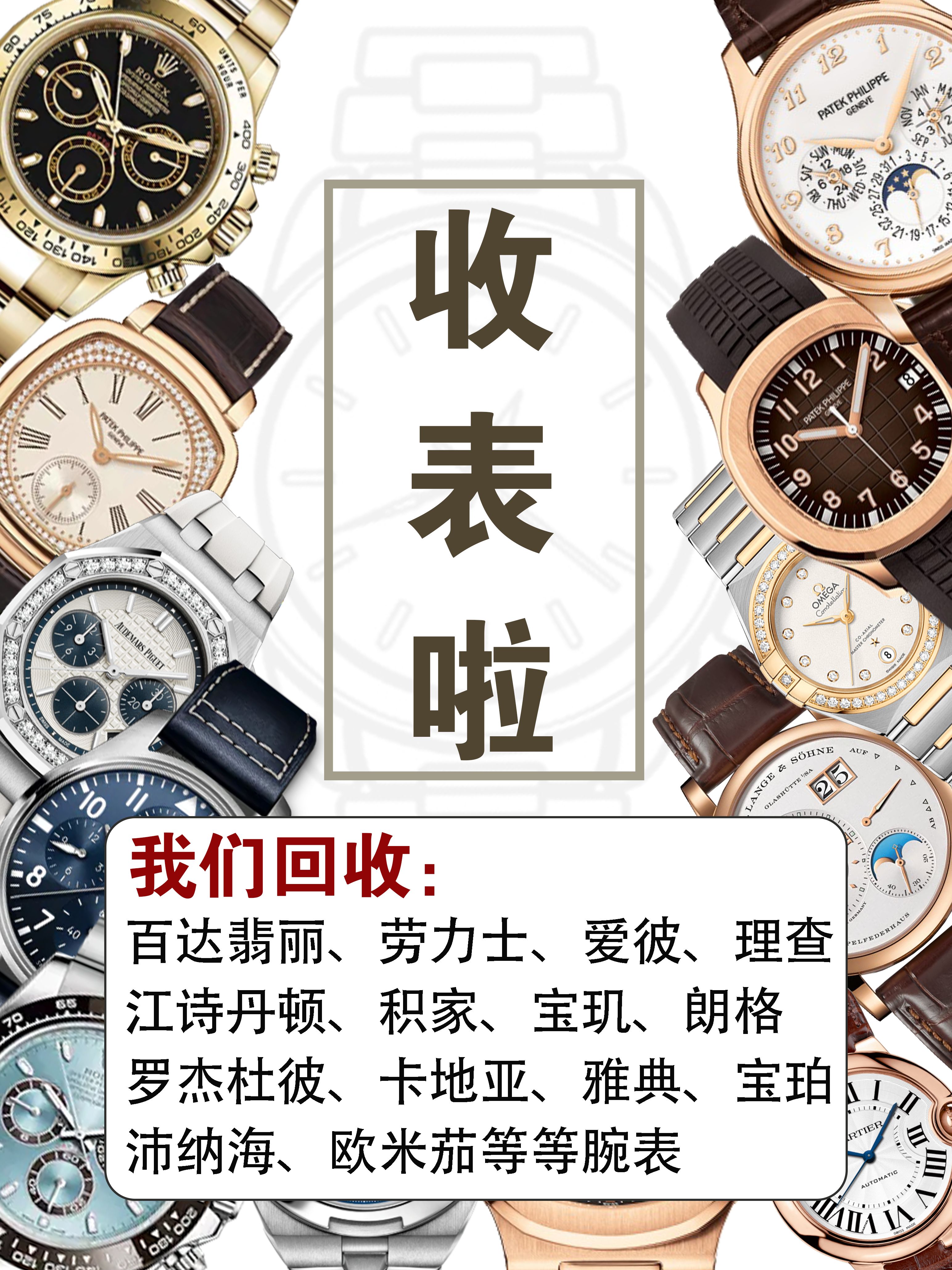 一般手表都有表壳型号和机芯型号,高档的手表应该还有表的生产序号,机芯生产序号和表带号,这些标记打在表后盖的内外。另外,有些表的表带护耳内外侧也有号码。