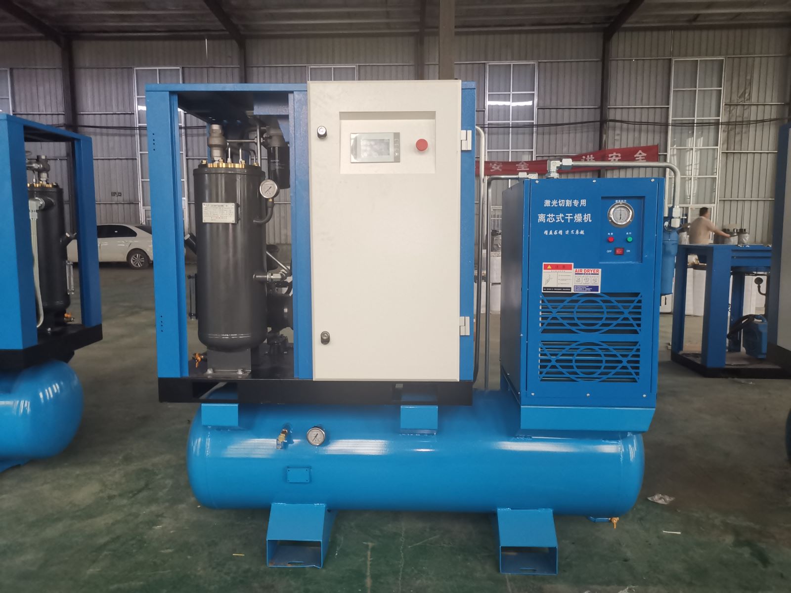6、就可以把冷水变为热水的机器这个就叫余热回收机是空压机的后续增加产品比如冬天你洗个手什么的比较不错,但要找相对专业的人员或公司帮你处理要不把空压机弄坏了,你就亏了寿力空压机韩工为你解答。