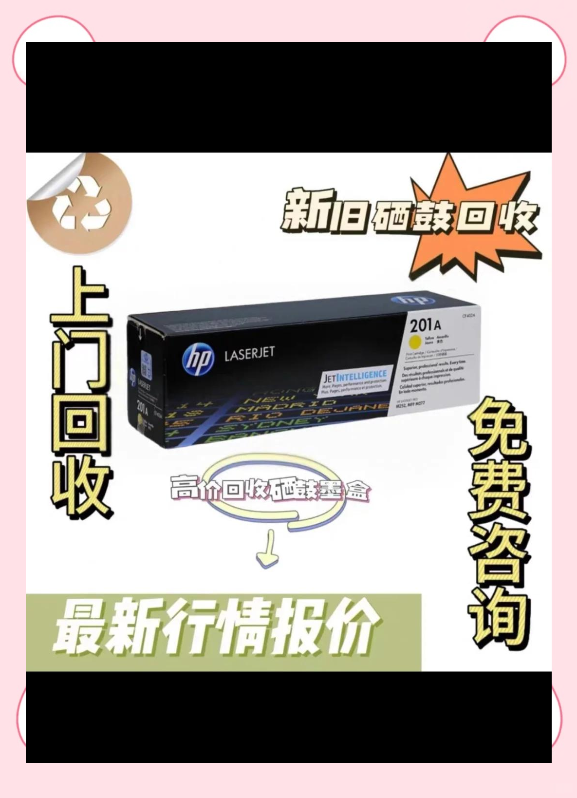 5、并且要严格分为有害垃圾可回收垃圾湿垃圾干垃圾几个大类 广州深圳南宁海口成都广元德阳,贵阳,昆明拉萨;常见办公耗材1硒鼓用于激光打印机复印机激光一体机,每一种机器对就不同的硒鼓 2粉仓用于激光打印机复印机激光一体机,其实是硒鼓的一部分,它只装碳粉,没有感光组件,是鼓粉分离式打印机的粉部分3墨盒用于喷墨打印机喷墨型传真机一体机 4色带框与色带用于针式;武汉宜昌长沙,广州深圳,南宁,海口,成都广元德阳 回收利用率高,较之开发自然资源有着处理简单成本低廉污染。