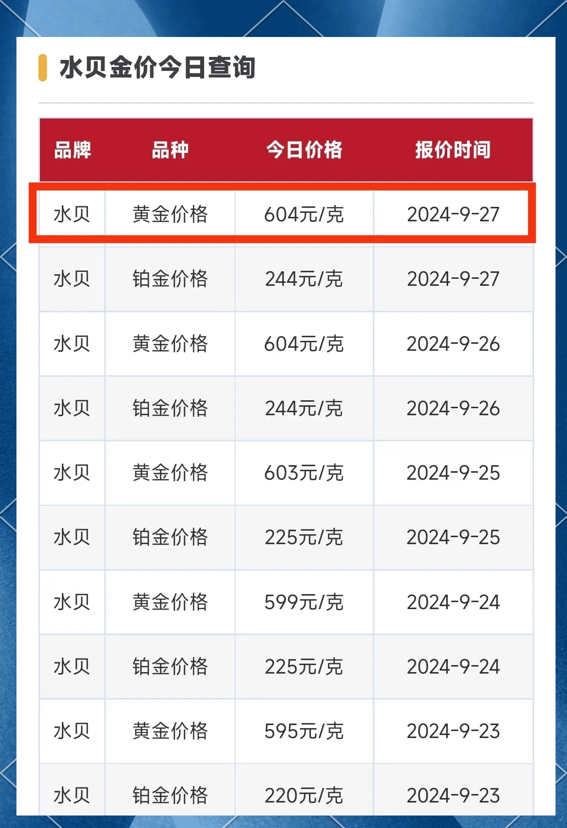 今日最新全国各大品牌黄金官方报价,今日最新全国各大品牌黄金价格多少钱一克(2016年08月25日)参考价格。