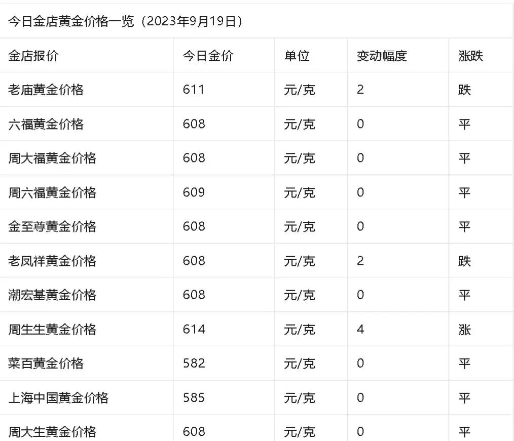 下面一起来看看今天周大福等店铺的首饰黄金价格数据: