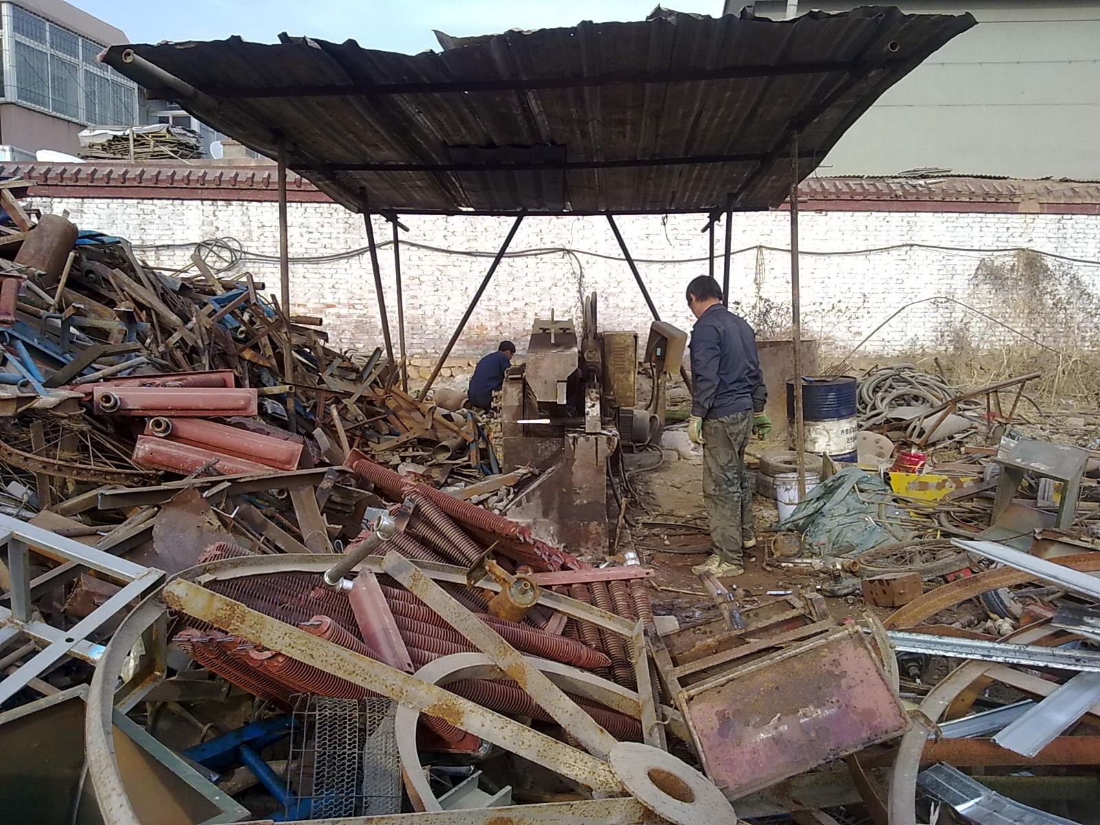 将加工好的旧材料分类堆放,便于利用。