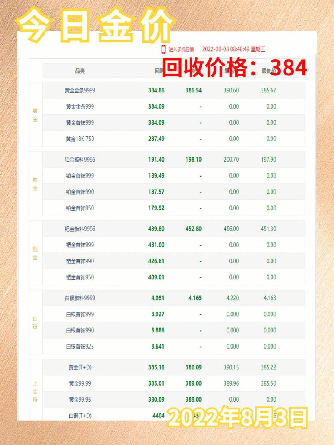 港元2,国际铂金暂报905美元盎司,国际钯价暂报2229美元盎司,国内金价暂报3982元克,国内基本金价3982元克今日贵金属回收价格报价 黄金。